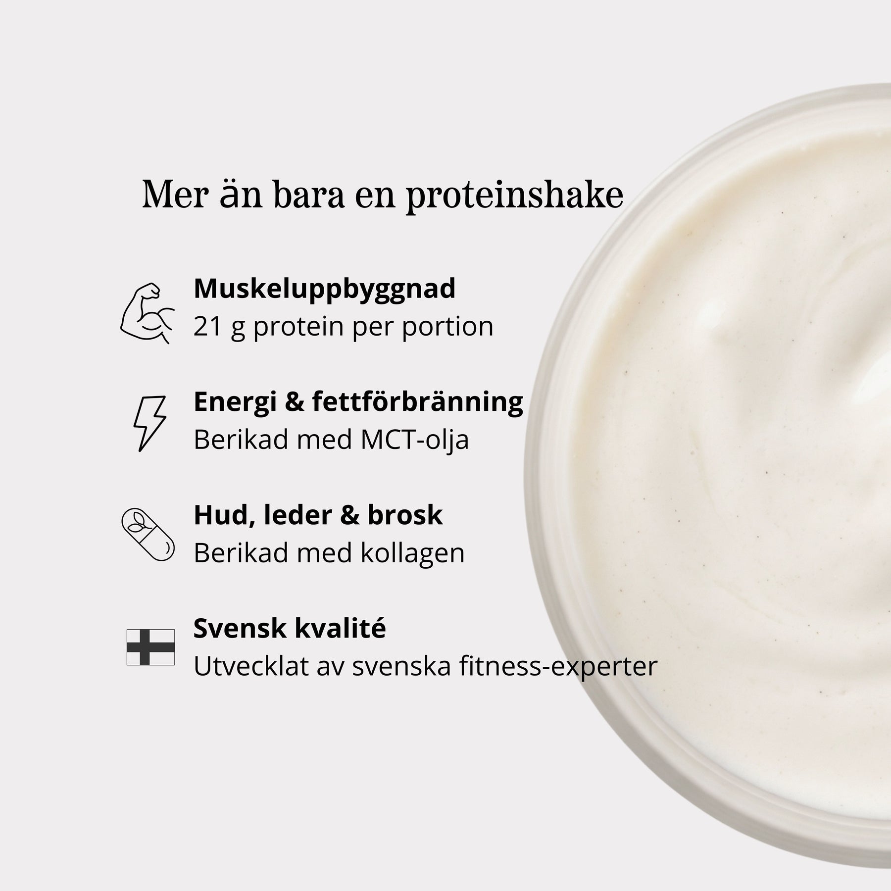 Unser leckeres, hochwertiges Proteinpulver mit MCT-Öl und Kollagen macht es dir leicht, deinen täglichen Proteinbedarf zu decken.